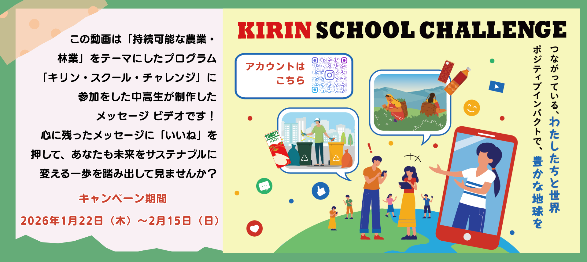 こども国連環境会議推進協会とキリンホールディングス株式会社は、日本の中高生が主役になって世界の様々な課題を考え、課題解決に向けて挑戦するプログラム「キリン・スクール・チャレンジ」を開催しています。